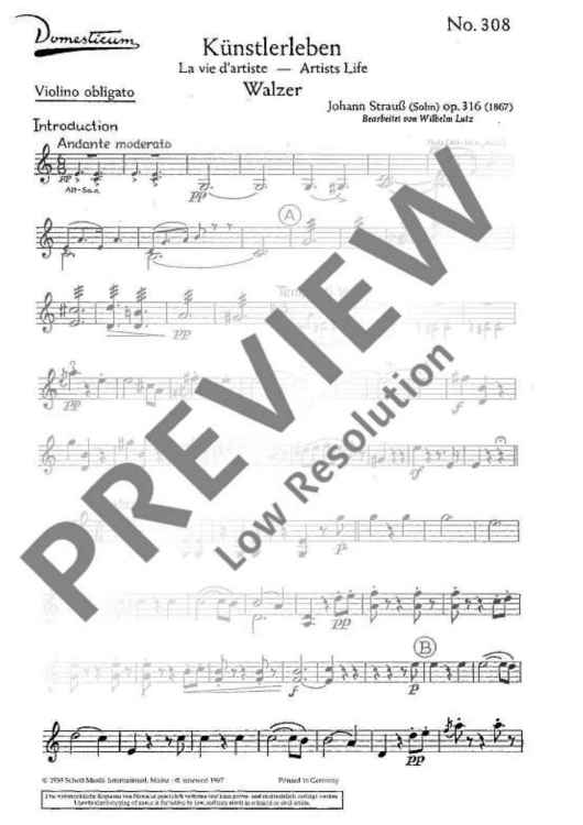 "Künstlerleben - Violin Obligat" Sheet Music by Johann Strauß (Son)