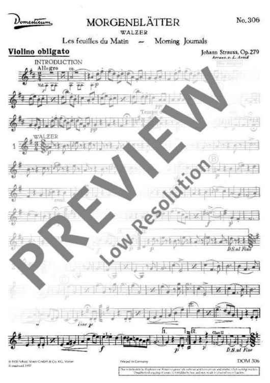 "Morgenblätter - Violin Obligat" Sheet Music by Johann Strauß (Son)