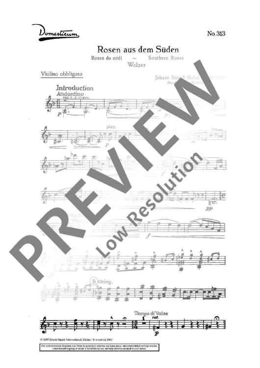 Digital Sheet Music for Rosen aus dem Süden - Violin Obligat by Johann Strauß (Son) scored for Salon Orchestra; id:488164