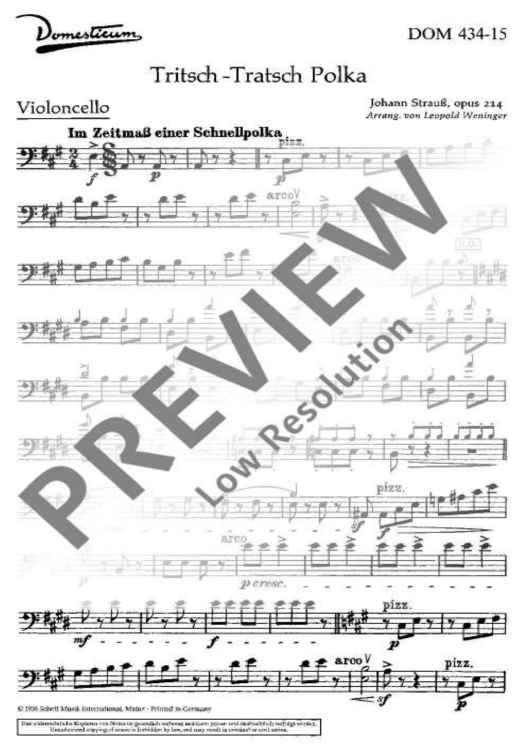 Digital Sheet Music for Tritsch-Tratsch Polka - Cello by Johann Strauß (Son) scored for Salon Orchestra; id:488156