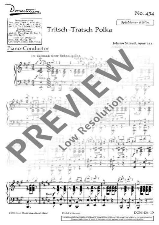 Digital Sheet Music for Tritsch-Tratsch Polka by Johann Strauß (Son) scored for Salon Orchestra; id:488153