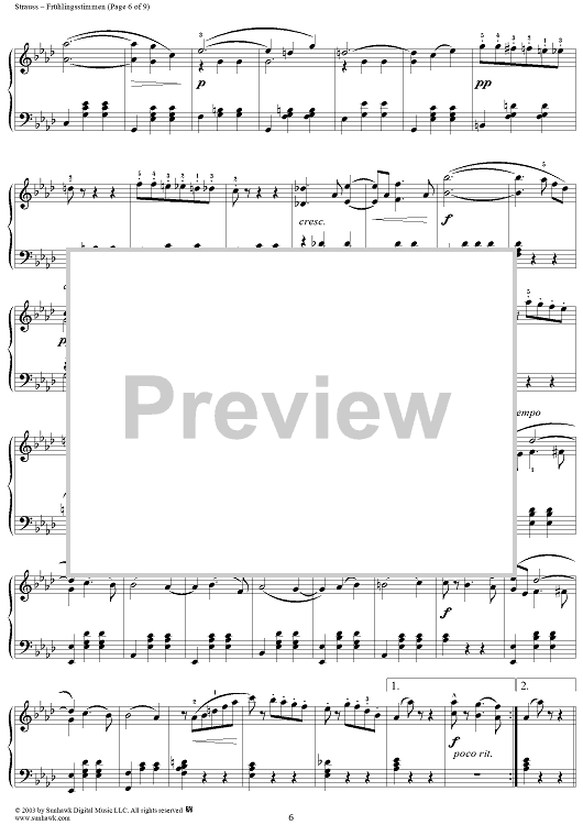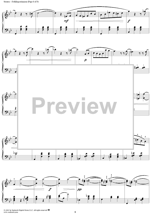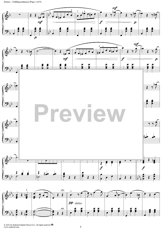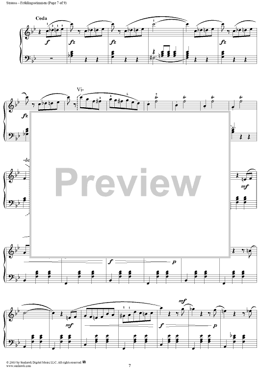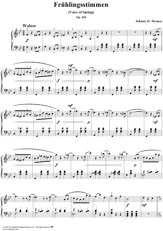 Digital Sheet Music for Frühlingsstimmen Op. 410 by Johann Strauss II scored for Piano Solo; id:293716