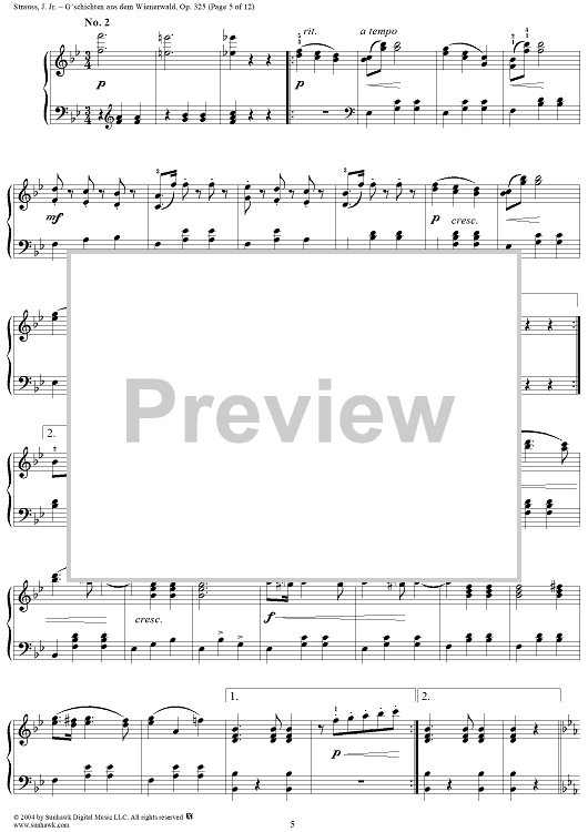 Digital Sheet Music for G'schichten aus dem Wienerwald, Op. 325 by Johann Strauss II scored for Piano Solo; id:295592