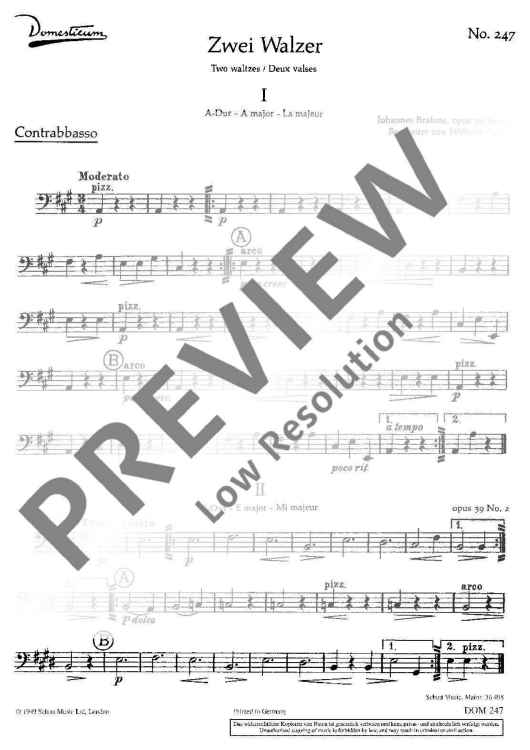 "2 Waltzes - Double Bass" Sheet Music by Johannes Brahms