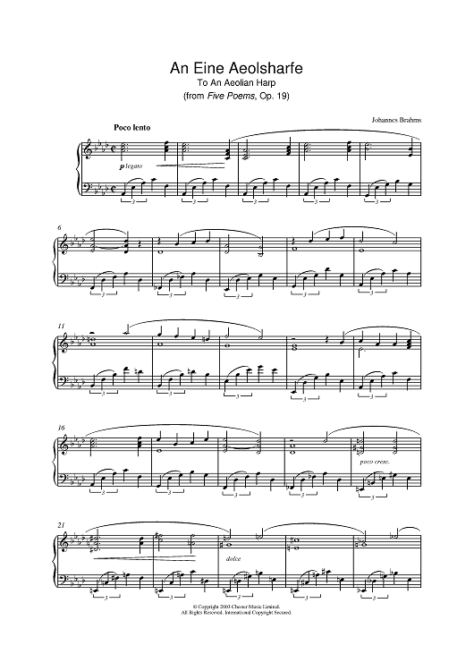 Digital Sheet Music for An Eine Aeolsharfe (from Five Poems, Op. 19) by Johannes Brahms scored for Piano; id:377277