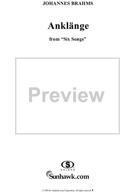 Digital Sheet Music for Anklänge - From "Six Songs" op. 7, no. 3 by Johannes Brahms, Joseph von Eichendorff scored for Voice/Piano; id:274391