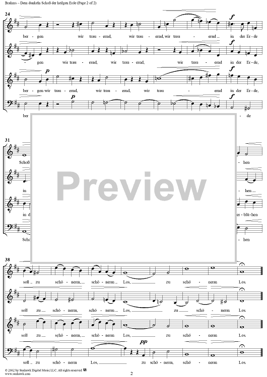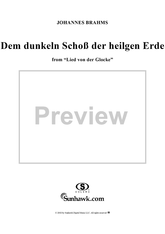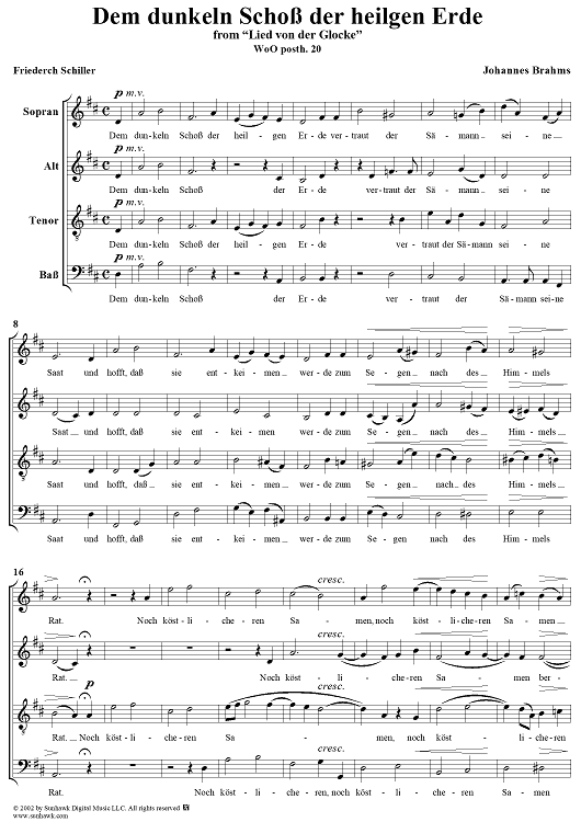 Digital Sheet Music for Dem dunkeln Schoß der heilgen Erde, WoO posth. 20 by , Johannes Brahms scored for Four-part Mixed Chorus; id:274430