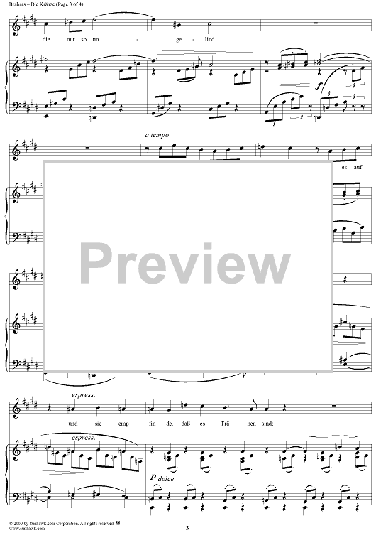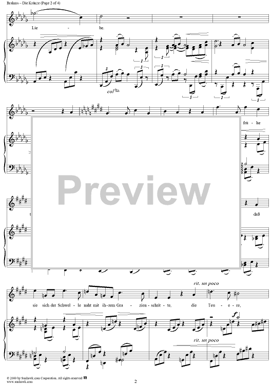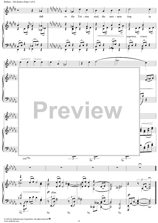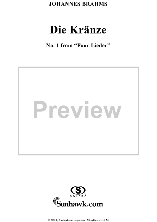 Digital Sheet Music for Die Kränze by Johannes Brahms, Georg Friedrich Daumer scored for Voice/Piano; id:198239