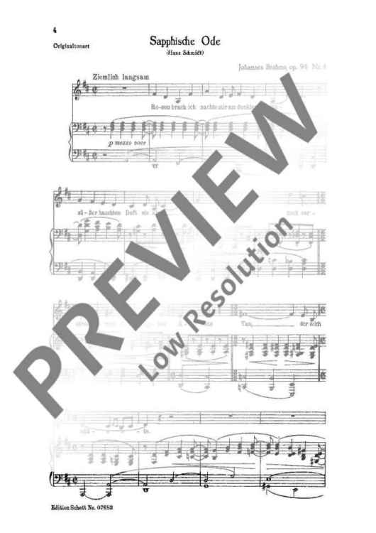 Digital Sheet Music for Feldeinsamkeit / Sapphische Ode by Johannes Brahms scored for Low Voice And Piano; id:494469