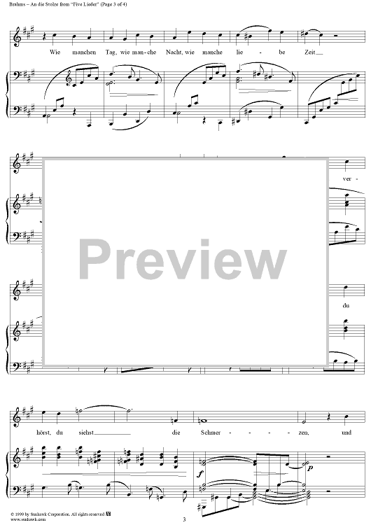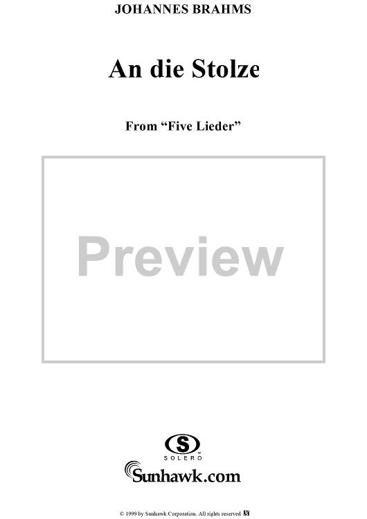 Digital Sheet Music for Five Lieder, Op. 107, No. 1, An die Stolze by Johannes Brahms, Paul Flemming scored for Voice/Piano; id:274195