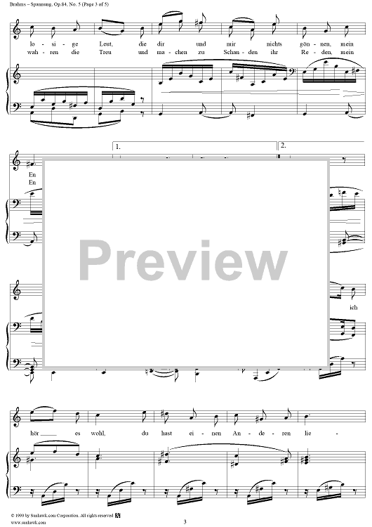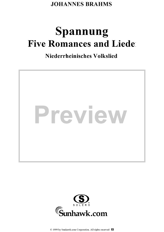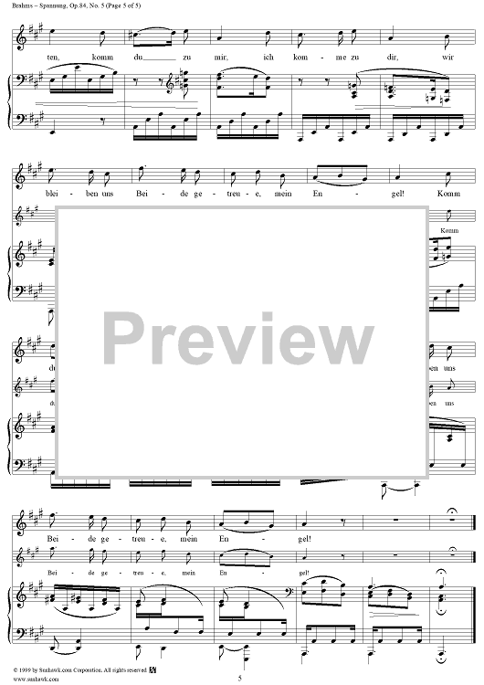 Digital Sheet Music for Five Romances and Lieder, op. 84, no. 5, Spannung by Johannes Brahms scored for Voice/Piano; id:274032