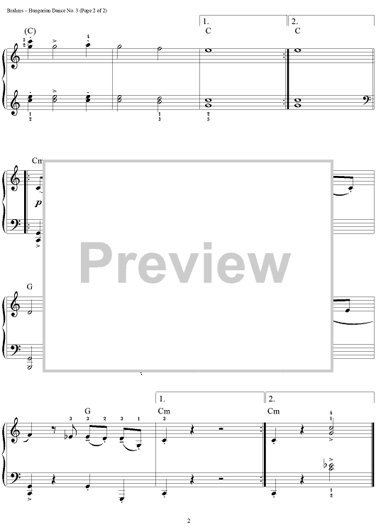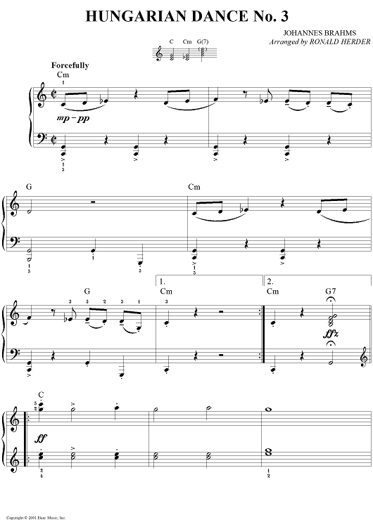 Digital Sheet Music for Hungarian Dance No. 3 by Johannes Brahms, Ronald Herder scored for Easy Piano; id:284879