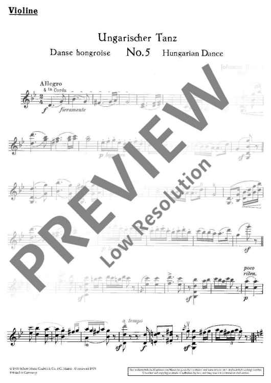 Digital Sheet Music for Hungarian Dance No. 5 in G minor by Johannes Brahms scored for Violin And Piano; id:474918