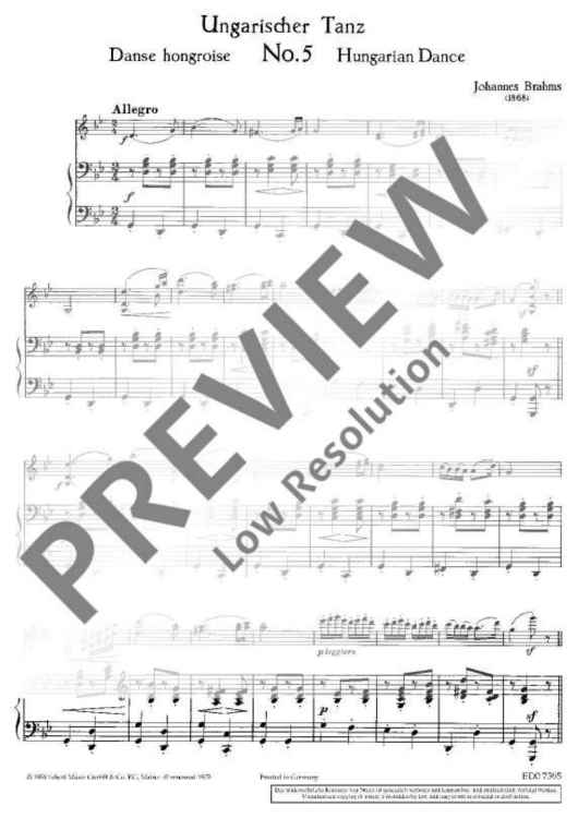 "Hungarian Dance No. 5 in G minor" Sheet Music by Johannes Brahms