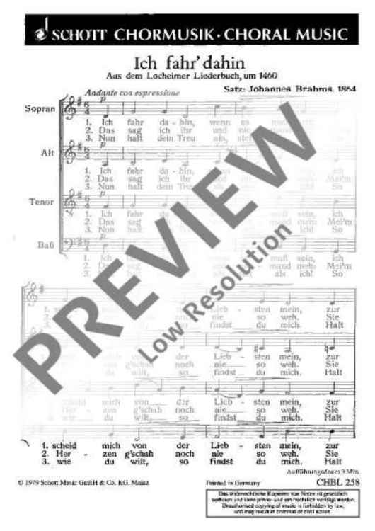 Digital Sheet Music for Ich fahr' dahin - Choral Score by Johannes Brahms scored for Mixed Choir (satb); id:471970