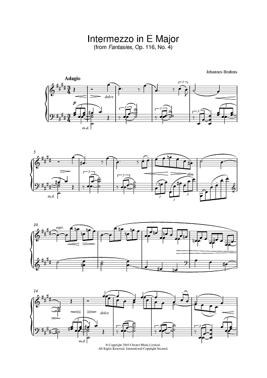"Intermezzo in E Major (from Fantasies, Op. 116, No. 4)" Sheet Music by Johannes Brahms