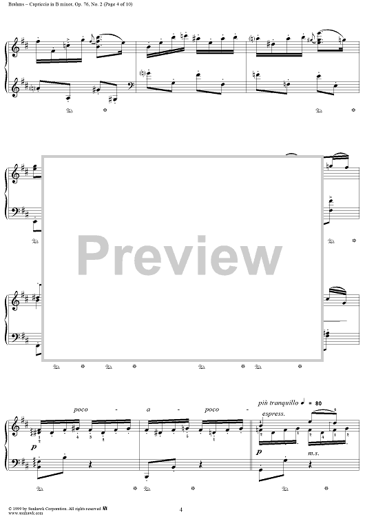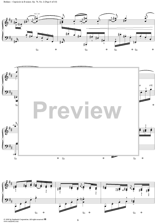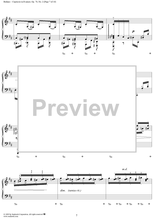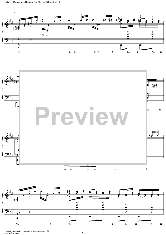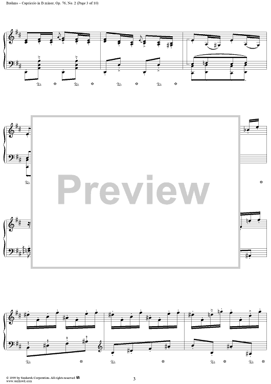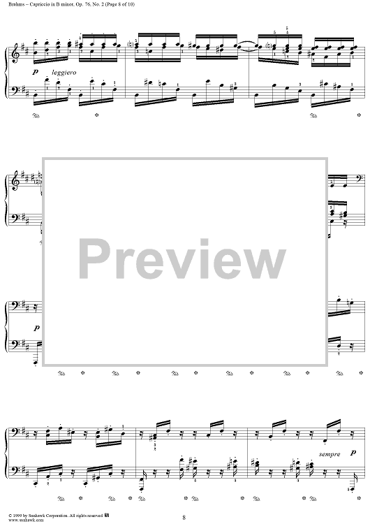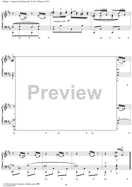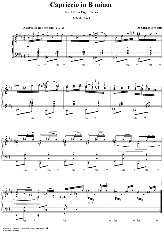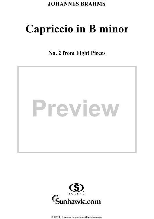 Digital Sheet Music for Klavierstucke, No. 2: Capriccio in B Minor by Johannes Brahms scored for Piano Solo; id:118445