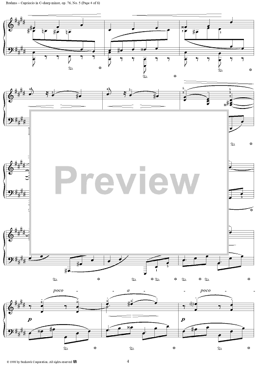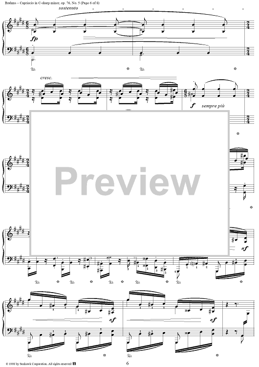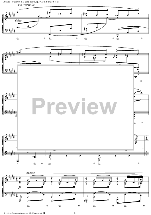 Digital Sheet Music for Klavierstucke, No. 5: Capriccio in C-sharp Minor by , Johannes Brahms scored for Piano Solo; id:274702