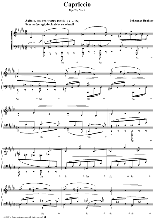 "Klavierstucke, No. 5: Capriccio in C-sharp Minor" Sheet Music by Johannes Brahms