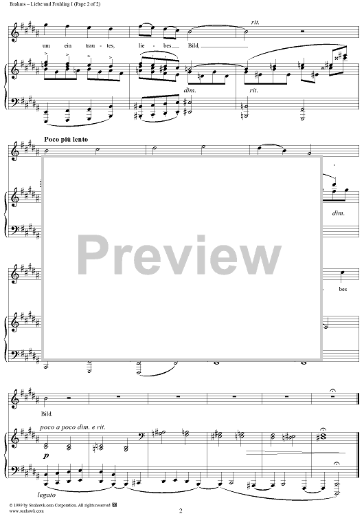 Digital Sheet Music for Liebe und Frühling I - From "Six Songs" op. 3, no. 2 by Johannes Brahms, August Heinrich Hoffmann von Fallersleben scored for Voice/Piano; id:274383