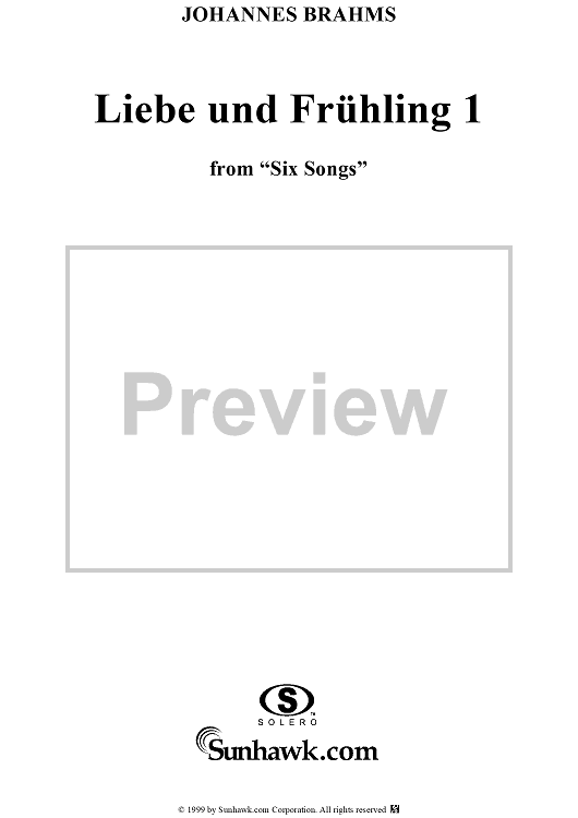 "Liebe und Frühling I - From "Six Songs" op. 3, no. 2" Sheet Music by Johannes Brahms