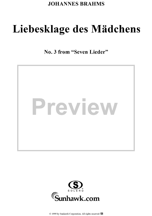 Digital Sheet Music for Liebesklage des Mädchens - No. 3 from "Seven Lieder" Op. 48 by Johannes Brahms scored for Voice/Piano; id:274695