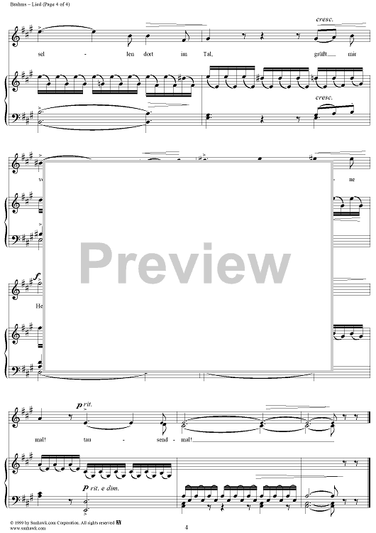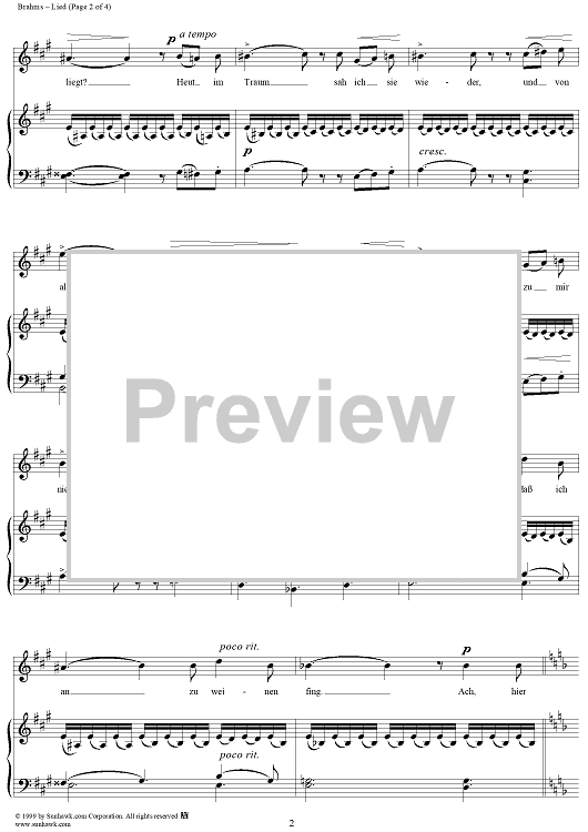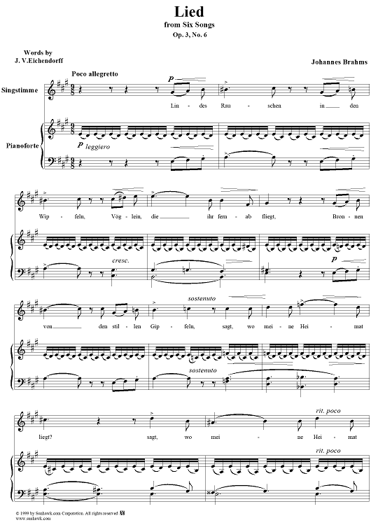 Digital Sheet Music for Lied - From "Six Songs" op. 3, no. 6 by Johannes Brahms, Joseph von Eichendorff scored for Voice/Piano; id:274382