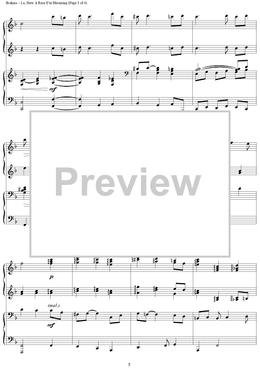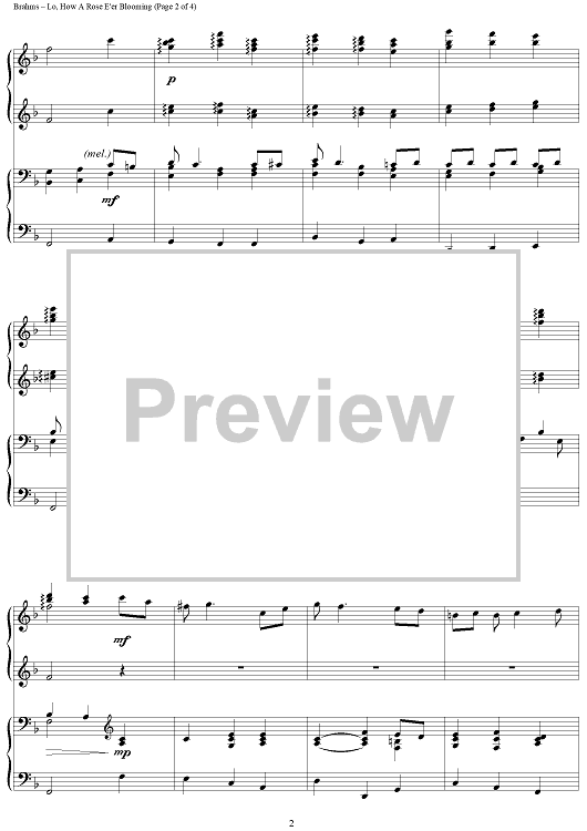 Digital Sheet Music for Lo, How a Rose E’er Blooming by Johannes Brahms, Larry Shackley scored for 1 Piano, 4 Hands; id:434817