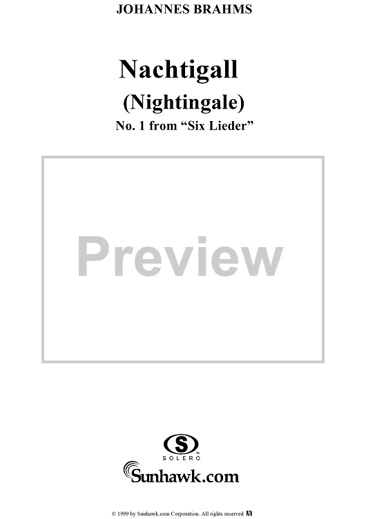 "Nachtigall No. 1 from "Six Lieder" op. 97" Sheet Music by Johannes Brahms