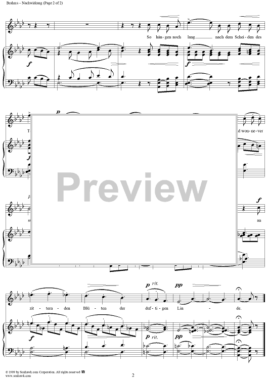 "Nachwirkung - From "Six Songs" op. 6, no. 3" Sheet Music by Johannes Brahms