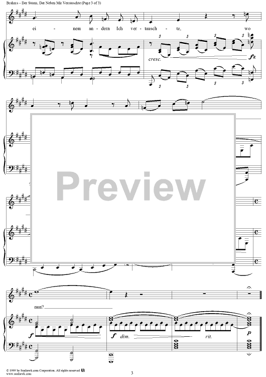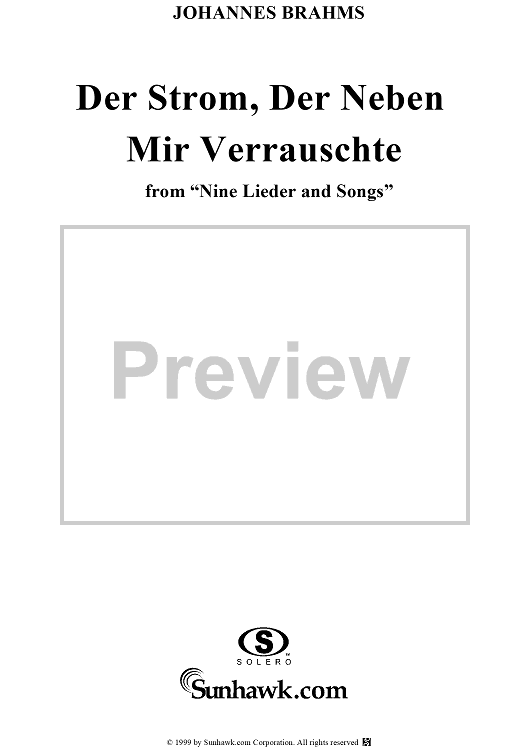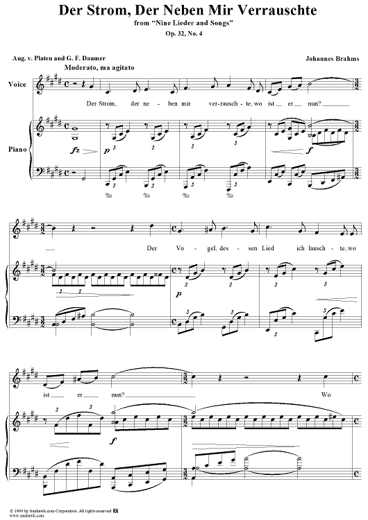 Digital Sheet Music for Nine Lieder and Songs, op. 32, no. 4, Der Strom, der neben mir verrauschte by Johannes Brahms, Georg Friedrich Daumer, August von Platen scored for Voice/Piano; id:274130