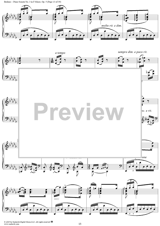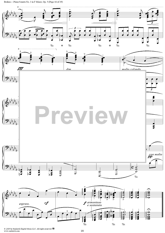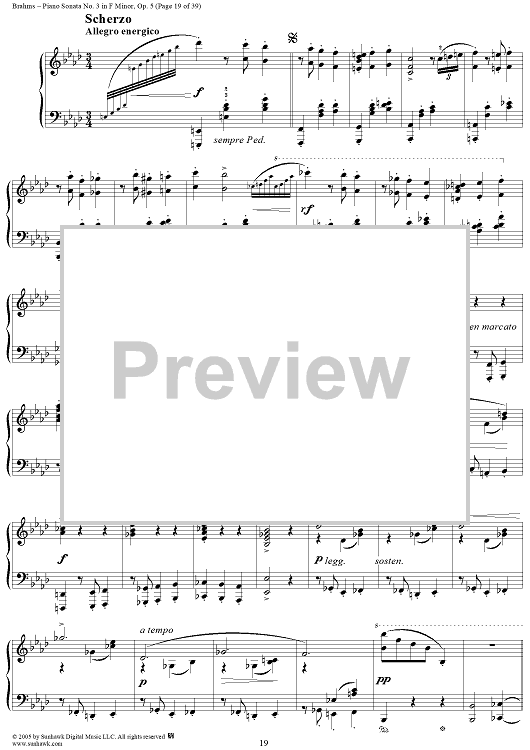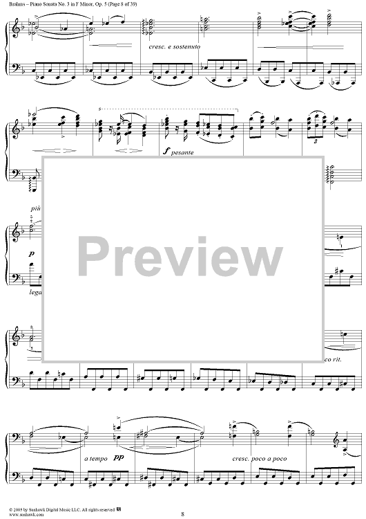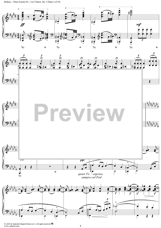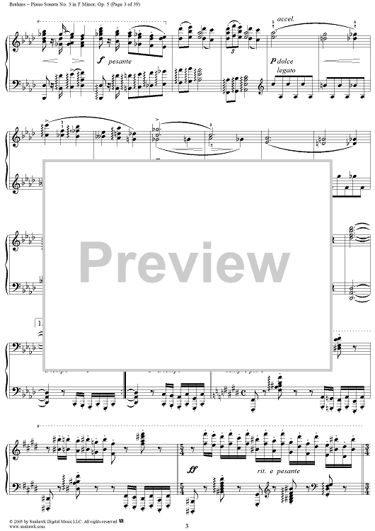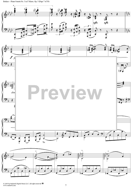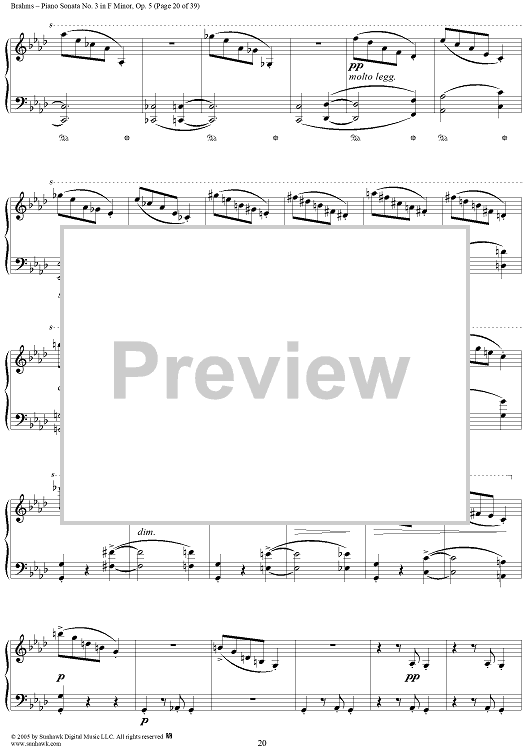 Digital Sheet Music for Piano Sonata No. 3 in F Minor, Op. 5 by Johannes Brahms scored for Piano Solo; id:315132