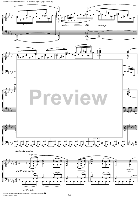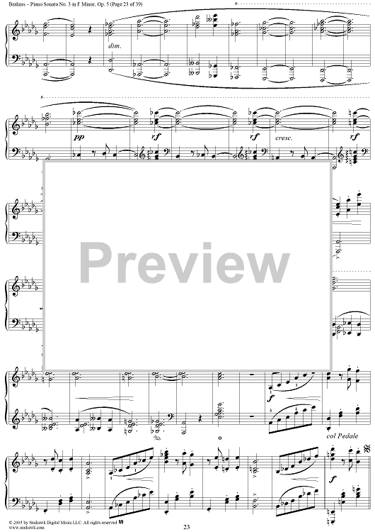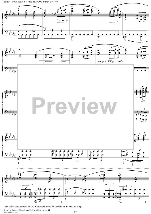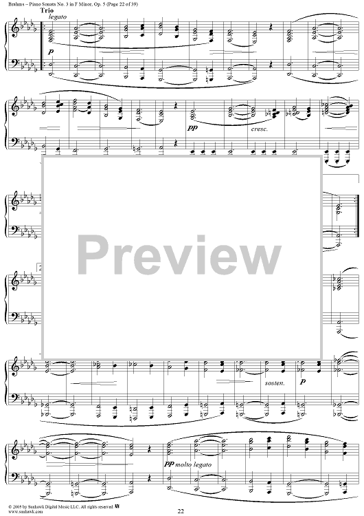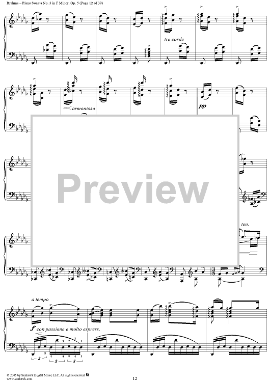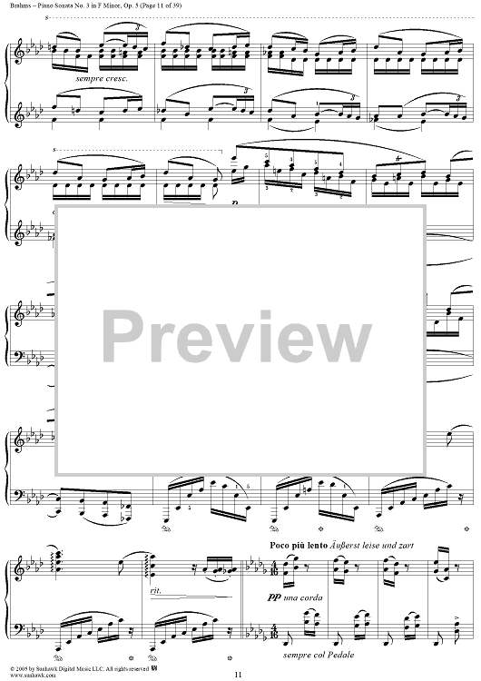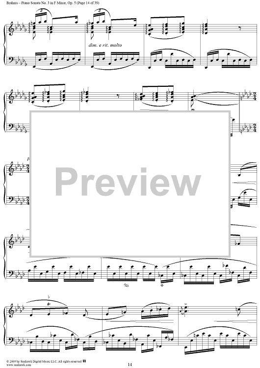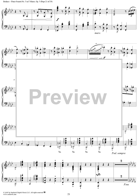 Digital Sheet Music for Piano Sonata No. 3 in F Minor, Op. 5 by Johannes Brahms scored for Piano Solo; id:315132
