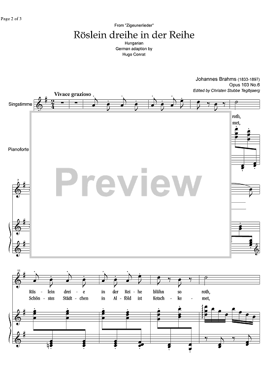 "Röslein dreihe in der Reihe Op.103 No. 6" Sheet Music by Johannes Brahms