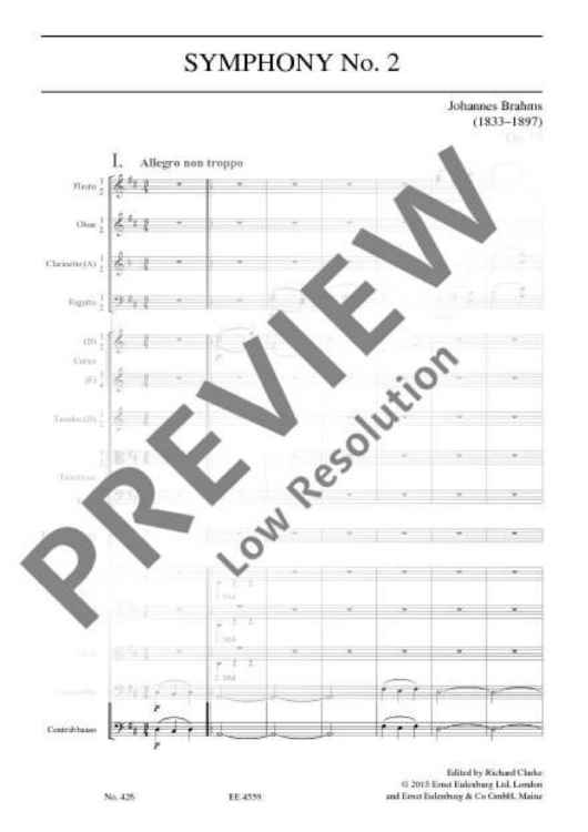 "Symphony No. 2 D major - Full Score" Sheet Music by Johannes Brahms