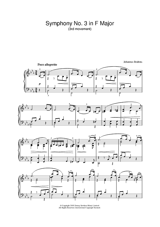 "Symphony No. 3 In F Major (3rd movement: Poco allegretto)" Sheet Music by Johannes Brahms