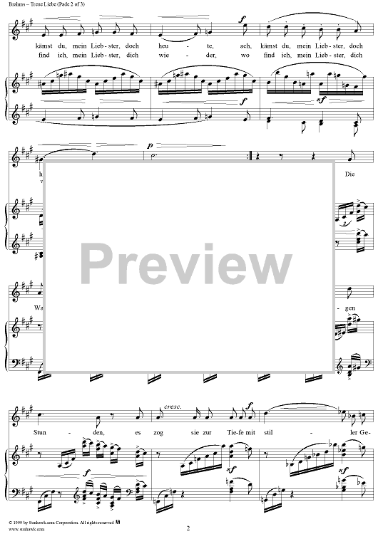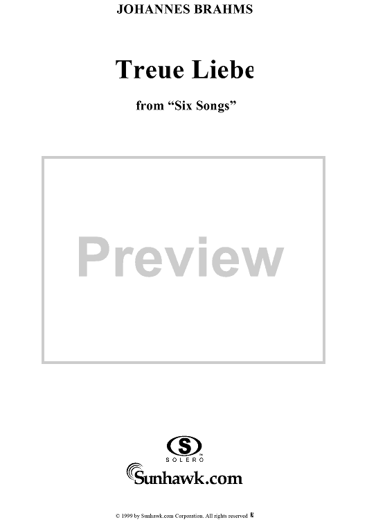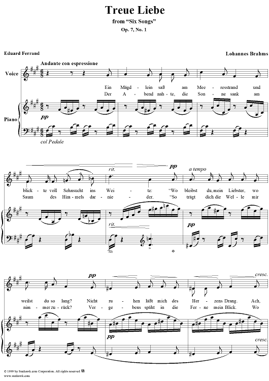 Digital Sheet Music for Treue Liebe - From "Six Songs" op. 7, no. 1 by Johannes Brahms, Eduard Ferrand scored for Voice/Piano; id:274386
