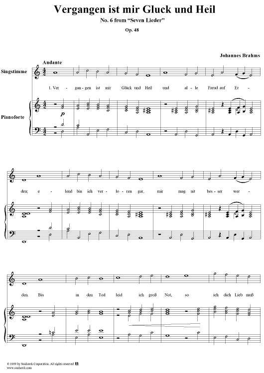 Digital Sheet Music for Vergangen ist mir Glück und Heil - No. 6 from "Seven Lieder" Op. 48 by Johannes Brahms scored for Voice/Piano; id:274688