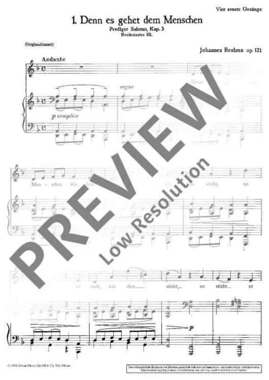 Digital Sheet Music for Vier ernste Gesänge by Johannes Brahms scored for Voice (alto Or Baritone) (original) And Piano; id:472457
