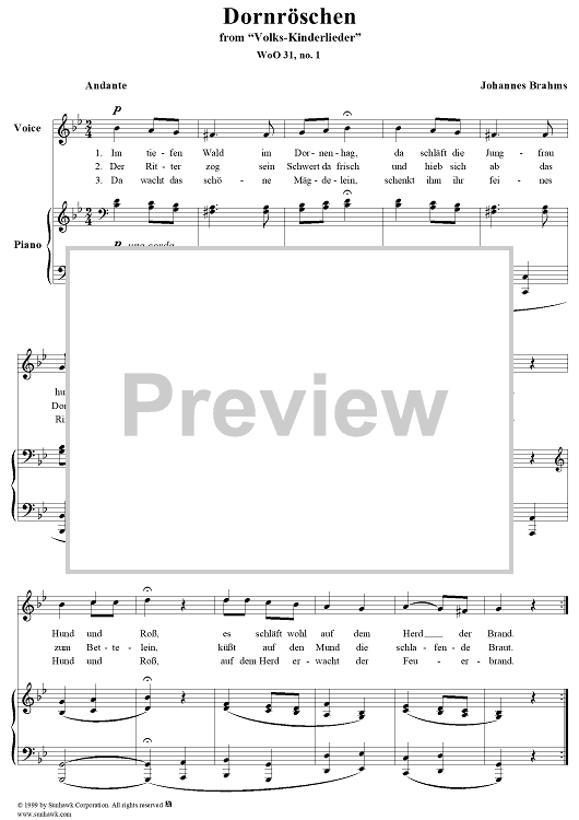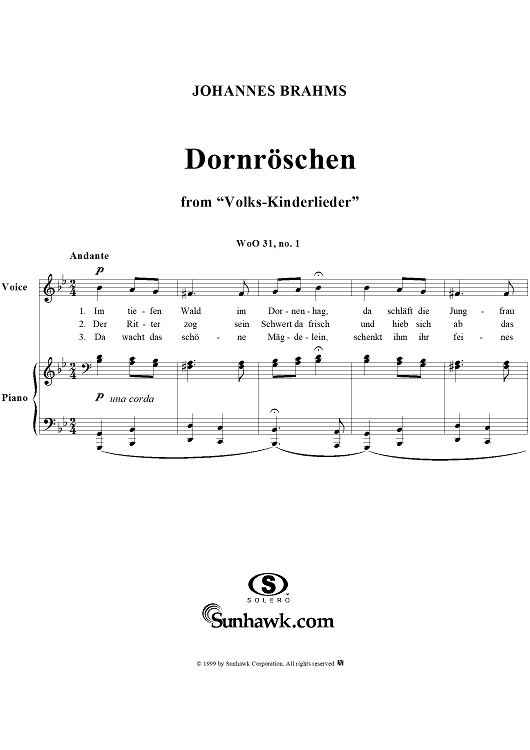 Digital Sheet Music for Volks-Kinderlieder, No. 1: Dornröschen, WoO 31 by Johannes Brahms scored for Voice/Piano; id:273751
