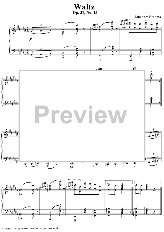 "Waltz in B Major, Op. 39, No. 13" Sheet Music by Johannes Brahms