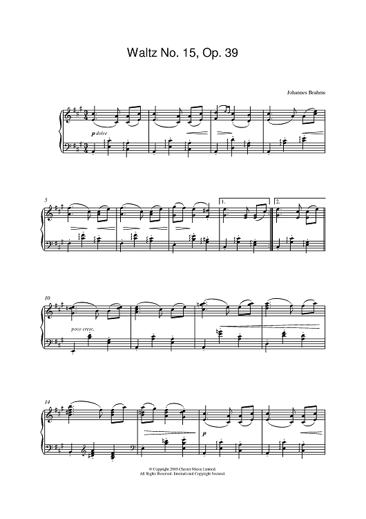 "Waltz No. 15, Op. 39" Sheet Music by Johannes Brahms