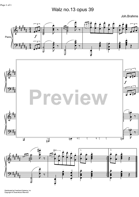 Digital Sheet Music for Waltz Op.39 No.13 by Johannes Brahms scored for Piano Solo; id:325109