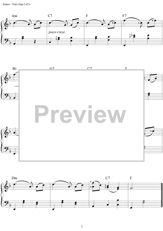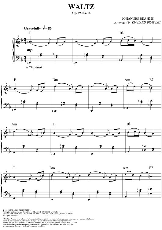 Digital Sheet Music for Waltz by Johannes Brahms, Richard Bradley scored for Easy Piano; id:292904