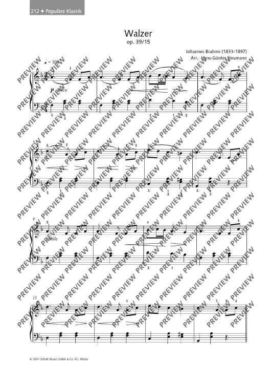 Digital Sheet Music for Waltz by Johannes Brahms, Hans-Guenter Heumann scored for Piano; id:483300