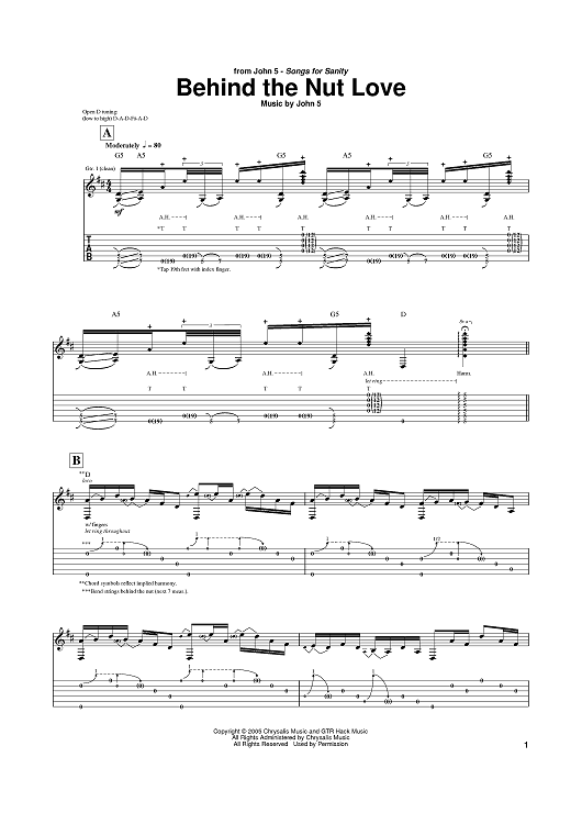 Digital Sheet Music for Behind The Nut Love by John 5 scored for Guitar Tab; id:387926