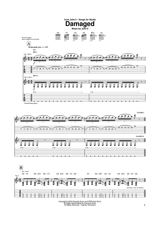 Digital Sheet Music for Damaged by John 5 scored for Guitar Tab; id:387922
