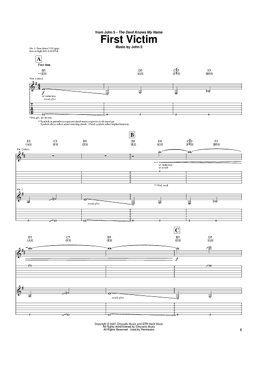 Digital Sheet Music for First Victim by John 5 scored for Guitar Tab; id:398383