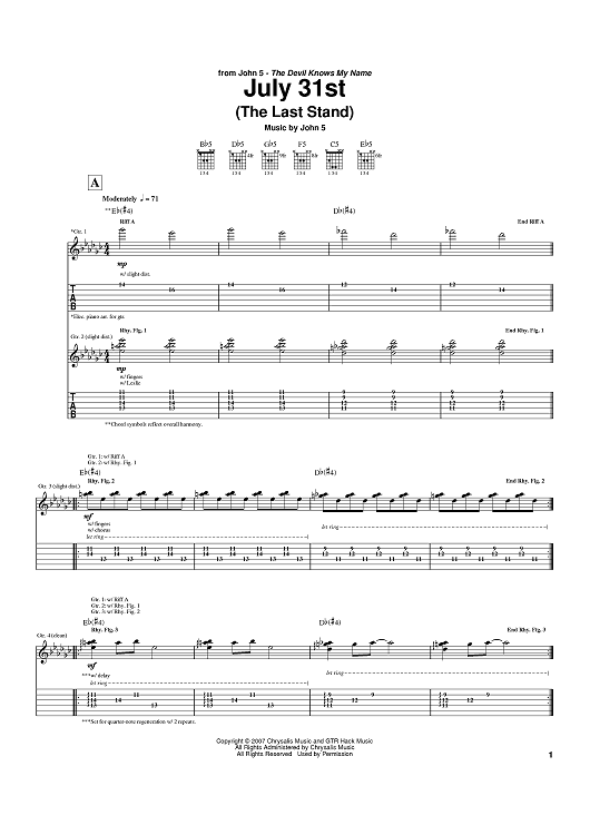Digital Sheet Music for July 31st (The Last Stand) by John 5 scored for Guitar Tab; id:398388