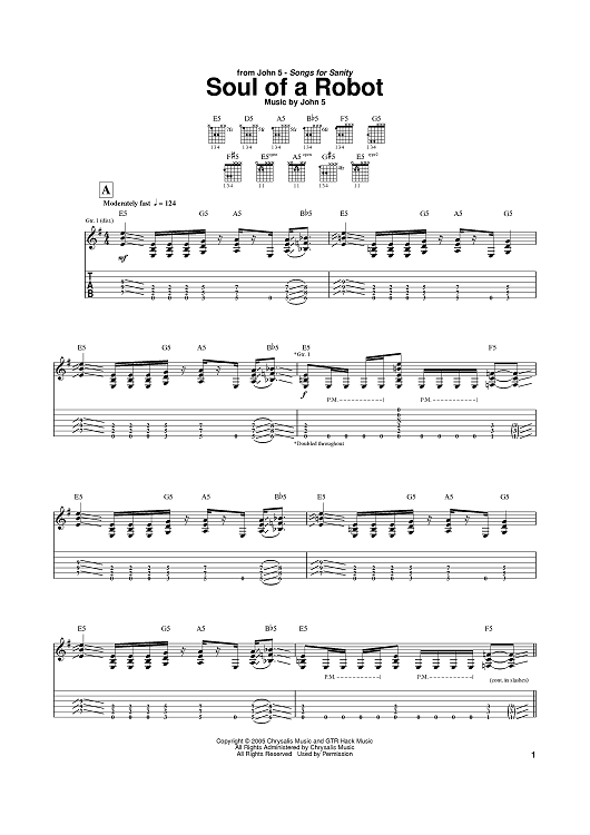 Digital Sheet Music for Soul Of A Robot by John 5 scored for Guitar Tab; id:387923